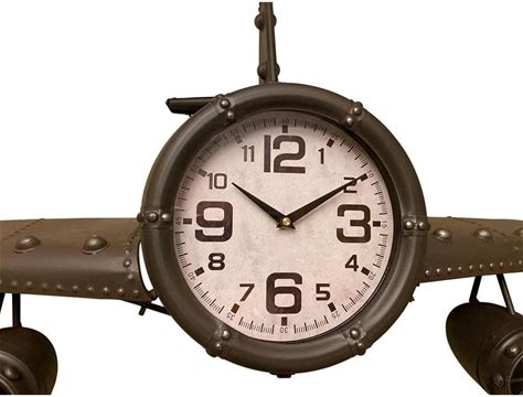 Metal Medium Rust Vintage Fighter Jet Wall Clock With White Clock Face 56 X 18 Inches, Rusty