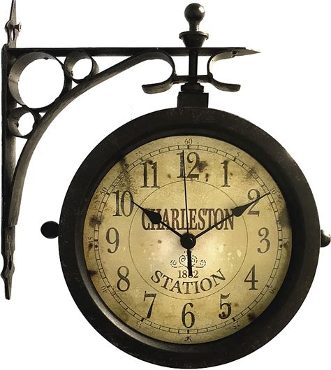 Infinity Instruments The Charleston Indoor/Outdoor Double-Sided Antique Clock, 8", Rust Finished