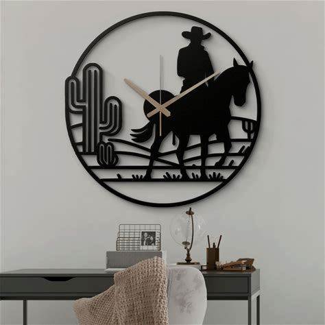 Western Cowboy Metal Wall Clock - Rustic Ranch Decor