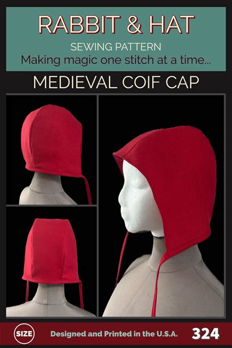 PDF Medieval Coif Cap Hat 324 New Rabbit And Hat Sewing Pattern - Tudor Cap, Two Sizes Women And Mens Historical Costume Larp