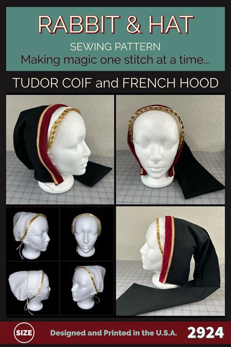 PDF Tudor Coif Cap And French Hood 2924 New Rabbit And Hat Sewing Pattern - Medieval Renaissance Scottish Faire Costume Garb Hat Peasant Cap