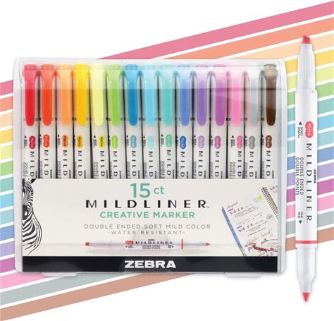 Zebra 15Ct Mildliner Dual-Tip Creative Colorful Marker Gifting: Mildliner Highlighters, Fine & Bold Tips, Multicolored Ink, Teacher Supplies