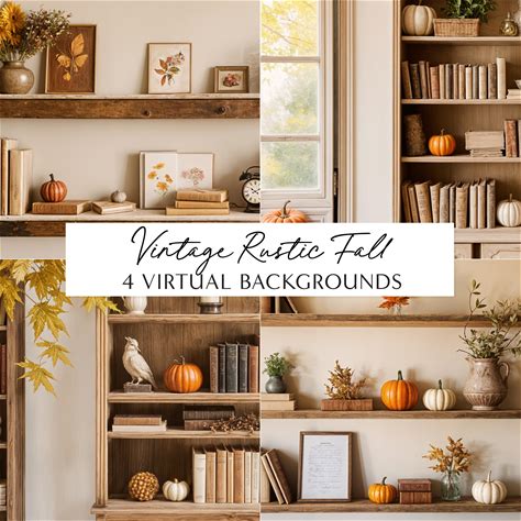 10 Cozy Autumn Home Office Zoom Virtual Backgrounds Scenic Fall Window & Bookshelf Backdrop For Teams Meetings Work From Home Cabin Backdrop
