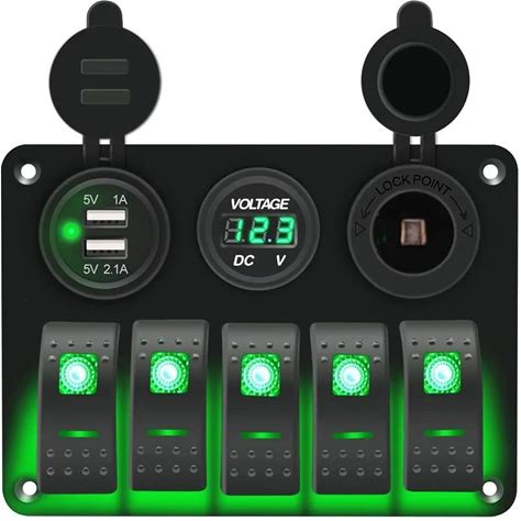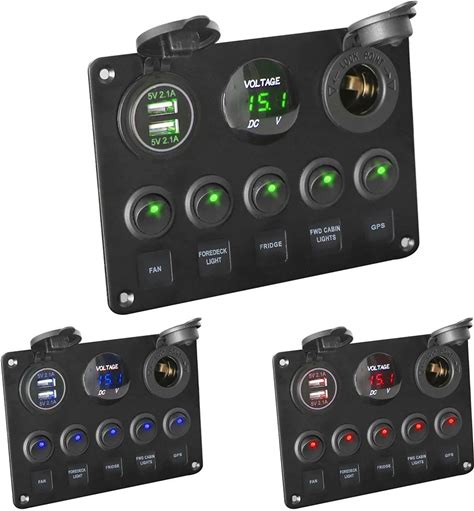 LED Toggle Rocker Switch Panel Digital Voltmeter Dual USB Port 12V Outlet Combination Waterproof For
