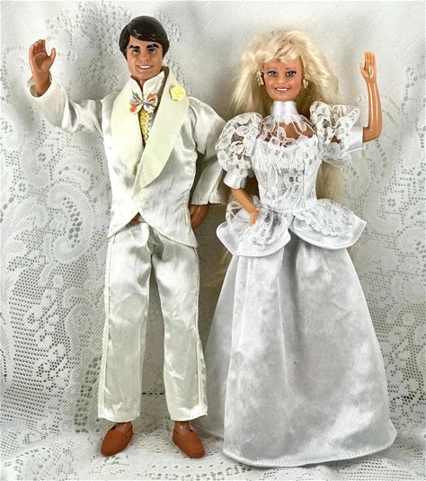 Barbie And Ken Vintage Bride And Groom Dolls, Lace Wedding Gown, White Suit, Collectible 1968 Ken Doll & 1993 Barbie Doll, Gift For Couple