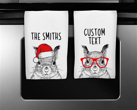 Squirrel Kitchen Towel, Christmas Tea Towel, Funny Woodland Animal Hand Towels, Custom Waffle Weave Towel, Personalized Housewarming Gift