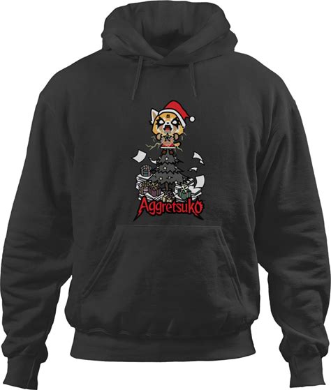 Aggretsuko Metal Christmas Tree Hoodie - Unisex Black Pullover Sweatshirt For Anime Fans And Holiday Celebrations