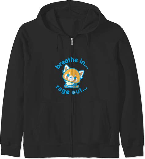 Aggretsuko Yoga "Breathe In Rage Out" Black Zip Hoodie - Unisex XL Activewear For Fans Of The Hit Anime Series