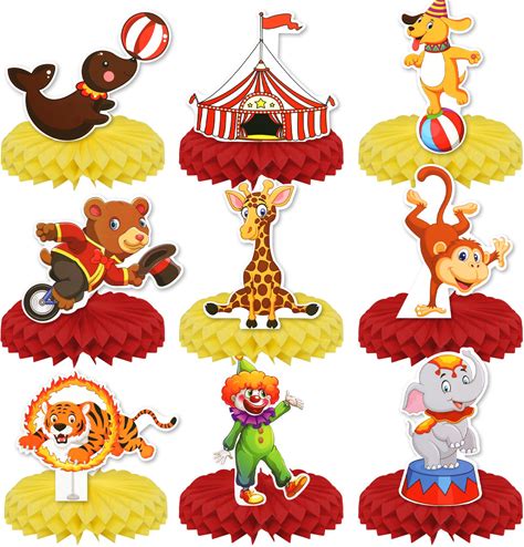 Carnival Circus Honeycomb Centerpieces, KSKSPE 9Pcs Carnival Circus Party Table Centerpieces Carnival Circus Birthday Decorations Carnival Theme Party