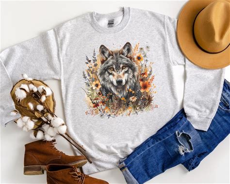 WOLF Sweatshirt, Cottagecore Sweater, Floral Wolf Crewneck Pullover, Boho Animal Shirt, Forest Animal Shirt, Woodland Wildlife Sweatshirt