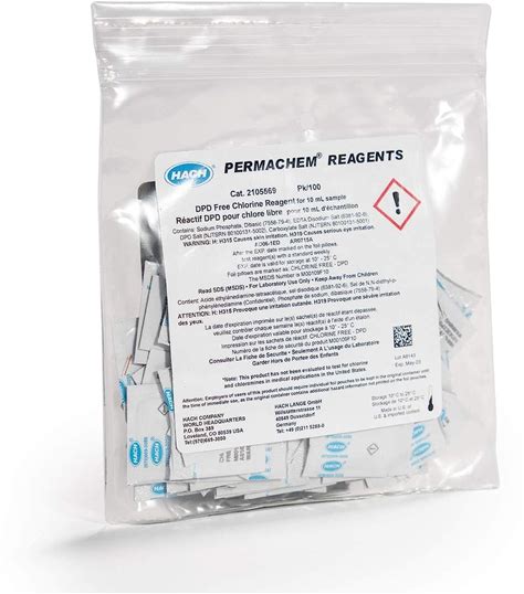 Hach DPD Free Chlorine Reagent Powder Pillows, 10 Ml, Pack Of 100, Range From 0.02-2.00 Mg/L Cl2, USEPA Accepted Method 8021, Drinking Water And