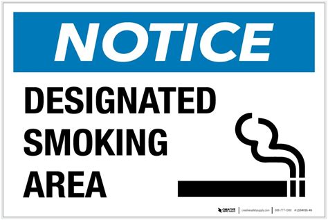 Area. Sign Free - Designated Smoking Sign