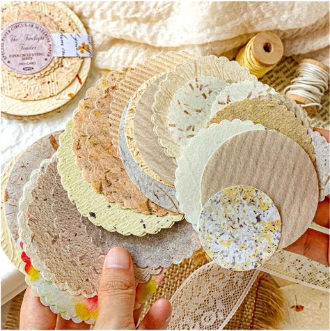 Craftbloom 300Pcs Embossed Textured Scrapbook Paper Patterned Journaling Paper Assorted Set, 6 Pack Mixed Special Round Ephemera For Scrapbooking