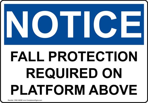 OSHA NOTICE Fall Protection Required On Platform Above Sign, Plastic | Size: 7X5, ONE-36056 | By Compliancesigns