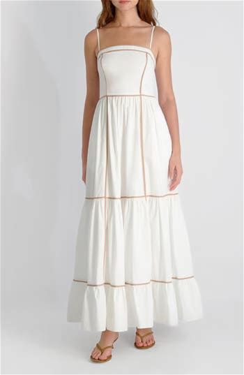French Connection Cambria Contrast Trim Cotton Maxi Dress In Summer White At Nordstrom, Size Large