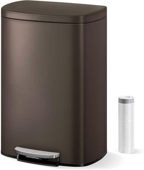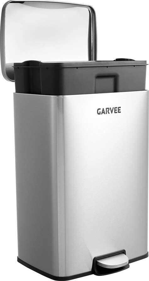 Garvee 13 Gal / 50 L Metal Kitchen Trash Can With Lid, Large Rustproof Garbage Can For Kitchen, Step-On Trash Bin With Inner Bucket, Rear Handle, Soft