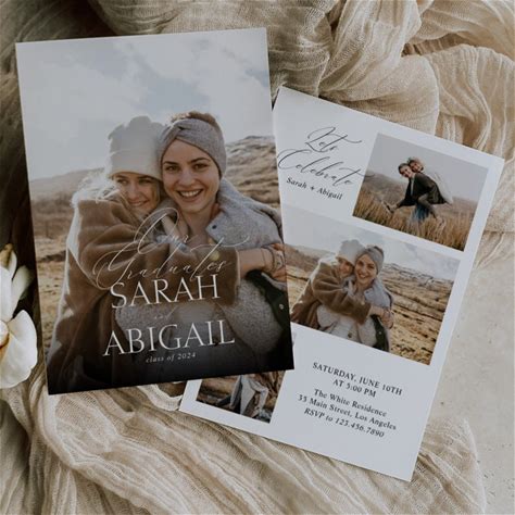 Modern Double Celebration Photo Graduation Party Invitation