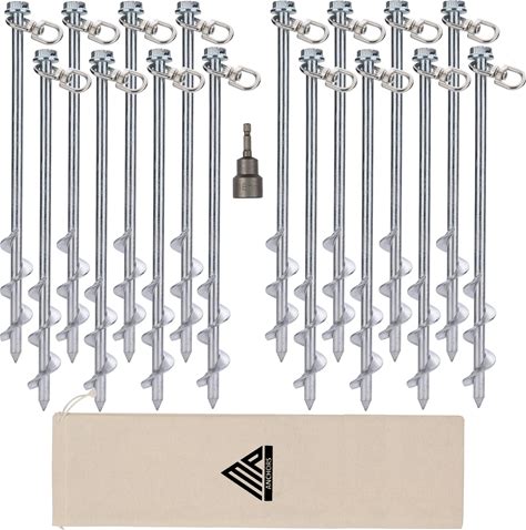 Ground Anchors Screw In - 12" Set Of 16 With Drill Bit - Earth Anchors - Ground Stakes Heavy Duty - Mobile Home Anchors - Shed Anchor Kit - Swing Set