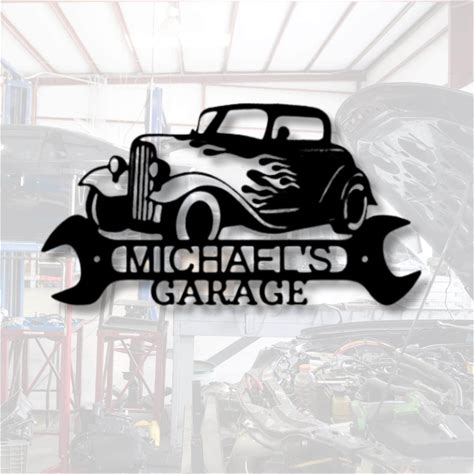 Personalized Hot Rod Metal Sign, Small Business Sign, Custom Garage Wall Art, Car Lover Gift, Mechanic Shop Decor, Man Cave Steel Sign