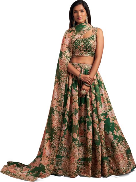 Emerald Green And Gold Lehenga Traditional Wedding Dresses Long Sleeve Indian Two Pieces Bridal Gown