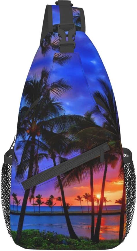 MANQINF Hawaii Tropical Palm Tree Sling Bag Women Men Backpack Crossbody Bag Travel Hiking Casual Daypack