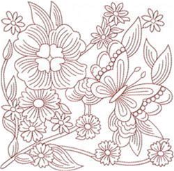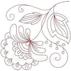 Redwork Floral Embroidery Design