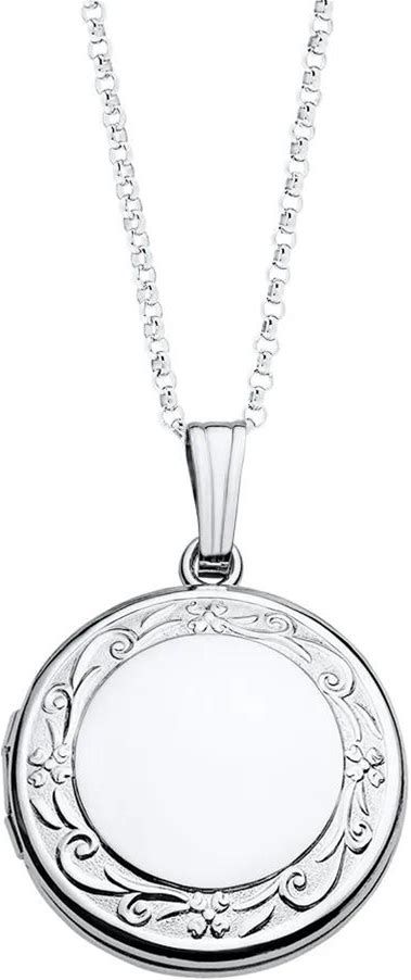 Round Locket With Floral Scroll Detail | Sterling Silver Necklace | White | Size 18" | Helzberg Diamonds