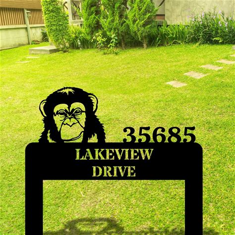 Personalized Monkey Address Metal Stake Sign, Custom Monkey Yard Sign, Fun Animal Address Marker, Outdoor Monkey Art, House Warming Gift