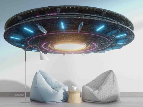 Alien Ufo Wallpaper, Alien Peel And Stick Wallpaper, Space Alien Wall Covering, Alien Abduction Wallpaper, Scifi Scenery Wallpaper Removable