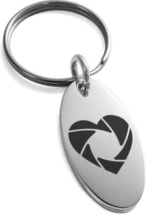 Stainless Steel Camera Shutter Heart Engraved Small Oval Charm Keychain Keyring