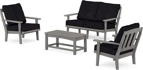 Cape Cod 5-Pieces Plastic Patio Fire Pit Deep Seating Set In Classic White With Glacier Spa Cushions