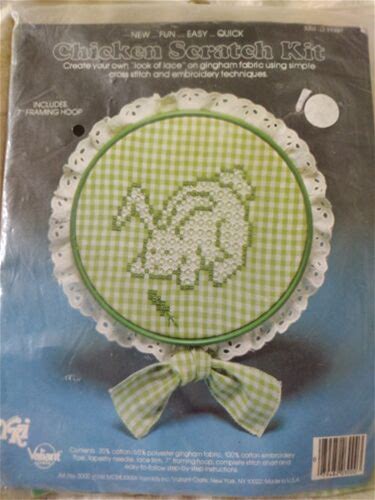 CHICKEN SCRATCH KIT Vintage 1983 Chicken Bird Look Of Lace Cross Stitch & Embroidery On Red Gingham Fabric Needlework Stitchery Kit