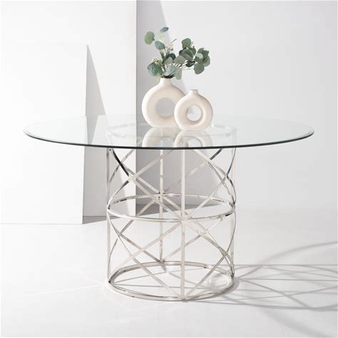 SAFAVIEH Couture High Line Collection Kyrie Chrome Stainless Steel Glass Top Dining Table - FOX9050A