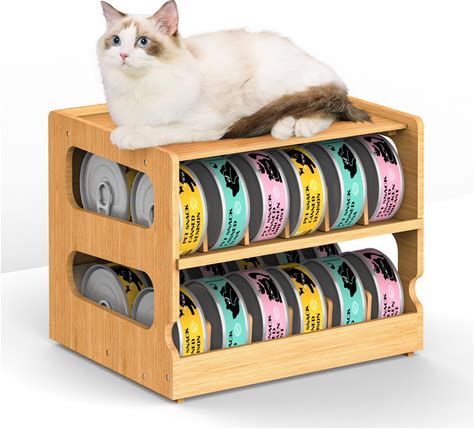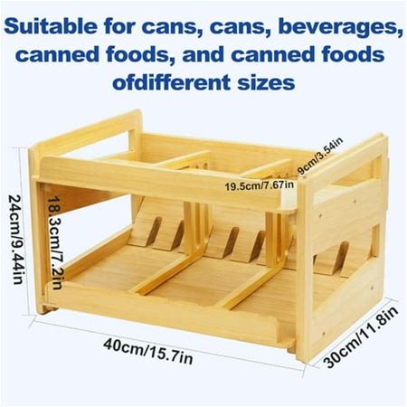 Adjustable Bamboo Can Organizer Rack Two Tier FIFO Dispenser Modern Countertop Storage Anti Shedding
