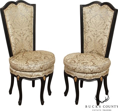 Italian Rococo Style Pair Of Ebonized And Partial Gilt Side Chairs