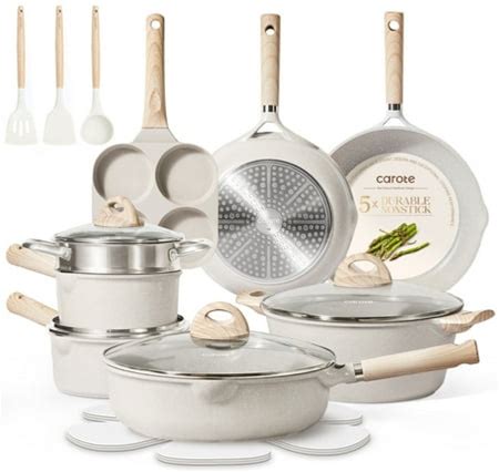 Carote Nonstick Cookware Sets, 24 Pcs Granite Non Stick Pots And Pans Set, Induction Cookware, White