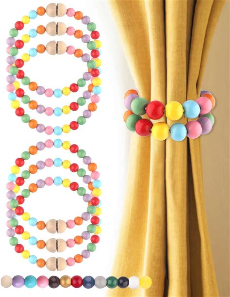 Magnetic Curtain Tiebacks 6 Pack: Boho Curtain Holdbacks Wooden Bead Drape Ties Farmhouse Curtain Ties For Boho Home Bedroom Office Baby Nursery Decor