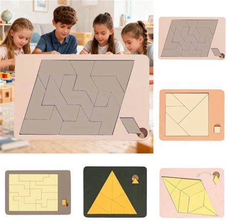 Junepar Polygon Tangram Puzzle Set 5Pcs Wooden Puzzle Challenging Puzzles Wooden Brain Teasers Puzzles Games Family Portable Brain Games Tangrams For