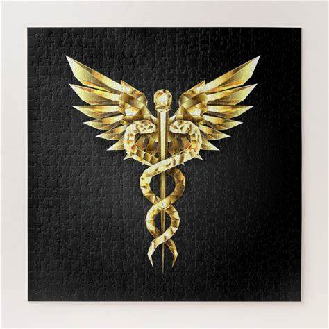 Gold Polygonal Symbol Caduceus Jigsaw Puzzle