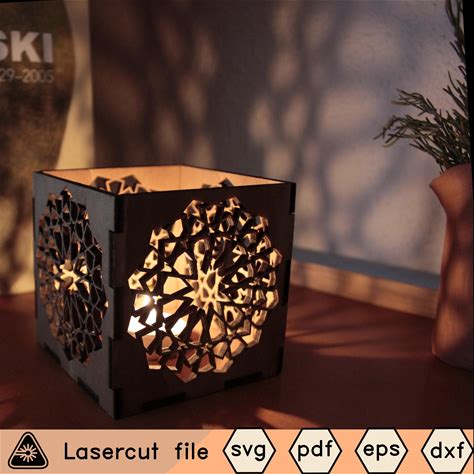 Laser Cut Gothic Tealight Lamp, Arabesque Shadow Pattern (SVG DXF PDF)