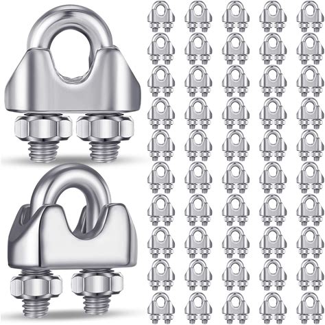 Blulu 50 Pcs 1/8 Inches M3 Stainless Steel Wire Rope Cable Clip Clamp 304 Stainless Steel Wire Rope Clamp Clip Wire Cable Clamp Wire Rope Clips U Bolt